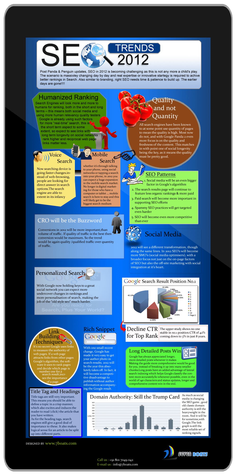 There are a myriad of other issues affecting your web content rankings through the ever changing way we conduct searches. These trends are going to totally affect the way a business will try and attract customers using SEO techniques. Here is a quick infographic from 7-boats.